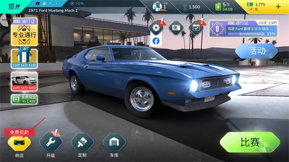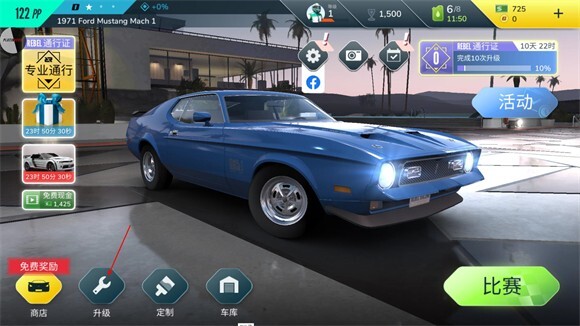 3、或者点击车库,选择强化装置、资源、熔合积分来提升赛车的性能和星级。