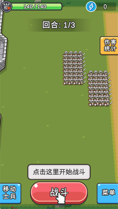 小兵三选一是一款休闲的放置类战争策略游戏,你将以人类阵营指挥官的身份投身战场,需要借助不同的兵种搭配策略来对抗各类哥布林。你能够通过调整兵种的站位来制定对敌方案,不同的站位会对战斗进程产生显著影响。