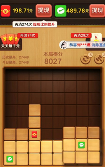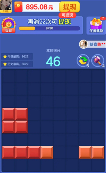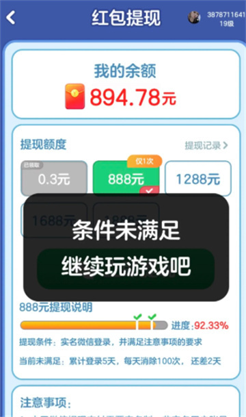 3、每通过几关就会出现特殊的红包关卡,只要一次性消除大量砖块或者达成特定条件,就能直接领取大额红包。