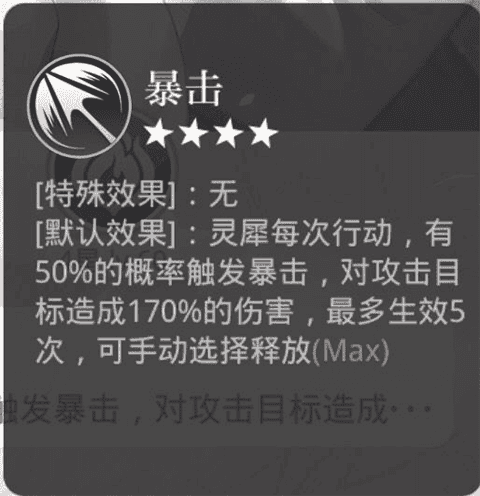 (3)暴击:单次百分比暴击效果,通过概率触发,每局游戏内最多可触发5次。