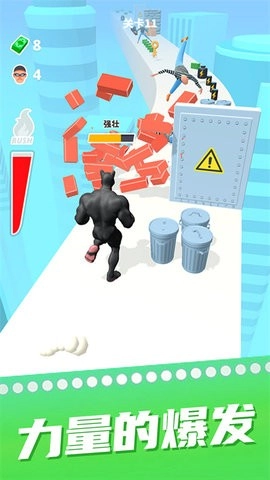 《猛男冲冲冲》是一款模拟肌肉男跑酷的休闲闯关游戏,采用全3D技术打造的场景极具真实感,能让众多玩家在游戏中获得身临其境的体验。在游戏里,玩家可以通过消耗金币升级装备以提升力量,升级家具来增加离线收益,升级装饰则能积累双倍奖励,从而在游戏过程中感受到别具一格的乐趣。