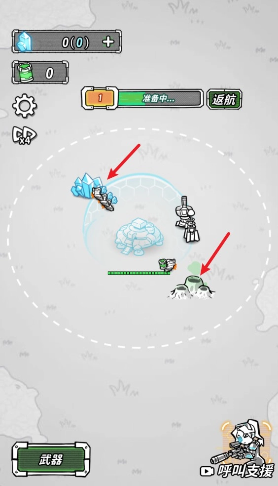 2、开局之后,工程车就会自动的收集水晶和瓦斯,瓦斯是局内养成道具,用于提升本局的武器。