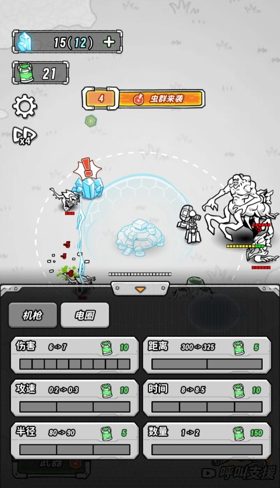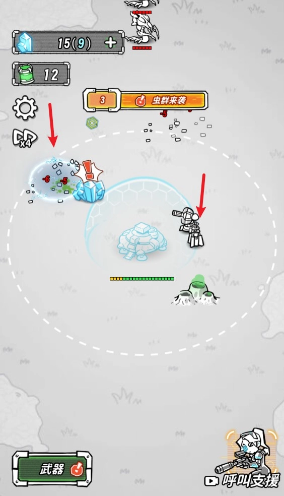 3、之后等怪物出现,我们的武器设备就会自动攻击范围内的敌人。