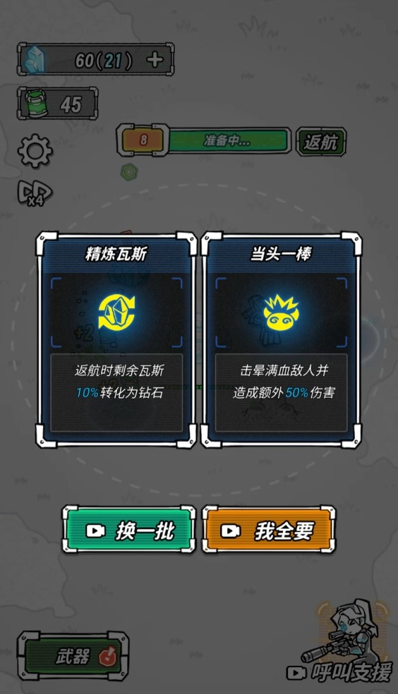 4、点开左下角的武器,我们就可以消耗瓦斯去升级了。