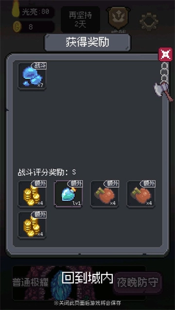 4. 战斗结束的越快,战斗评分越高收集的资源就越多。资源能用于升级建筑,强化角色。
