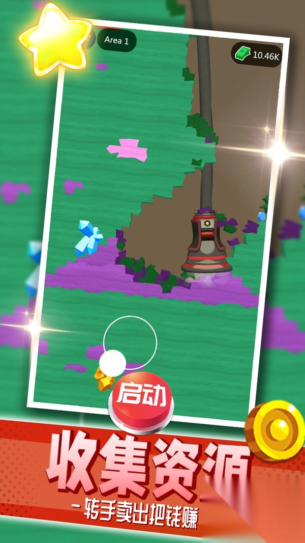 玩家通过持续开采金矿、积攒资金,能够一步步开启新的矿井与生产线,拓展属于自己的矿业帝国。