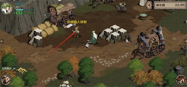 1、进入游戏后,玩家首先在湖光镇的地精商人地点完成收集材料任务。