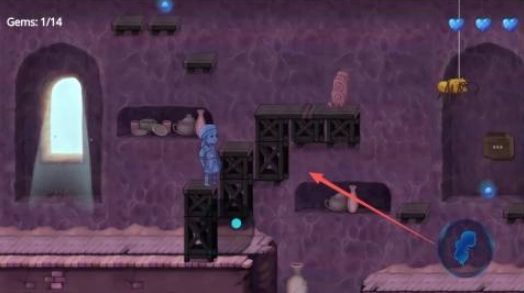 2、控制角色收集物品,顺利的抵达下一个平台。