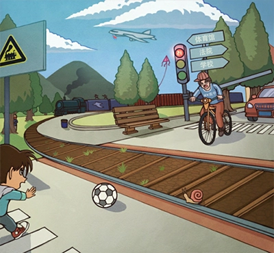 5、点击正在捡足球的小朋友,就知道他为什么要闯红灯了。