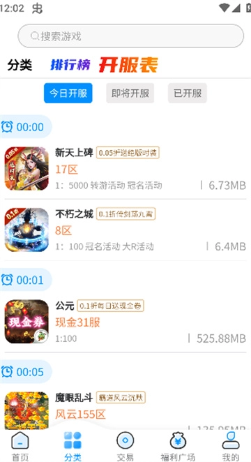 5、还设有开服表用户可以查看各种游戏上线的情况