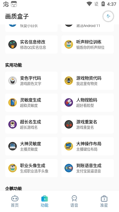 天赐画质盒子是一款免费且能功能强大的手机游戏画质增强软件,不仅能解锁帧数限制,而且还能进行个性化画质调节,同时提供灵敏度以及游戏画面视野范围的调节,所有画质工具免费使用,能确保稳定无卡顿的高清游戏画面运行,想要获取更多功能就天赐画质盒子吧!