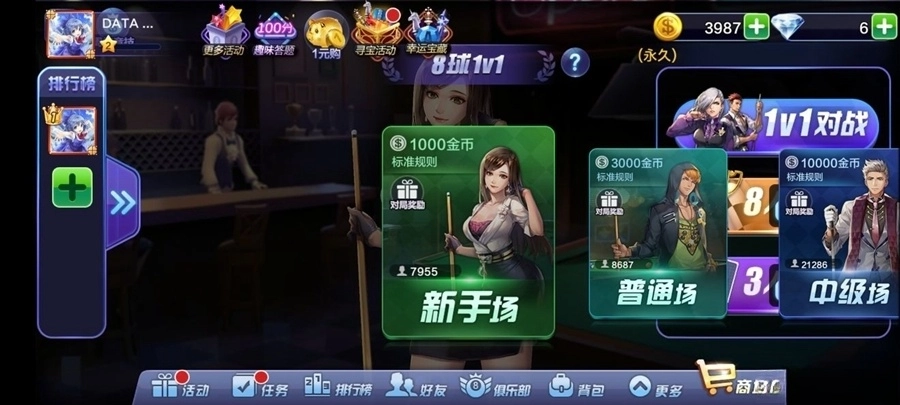 《腾讯桌球》这款游戏包含1V1匹配、3人欢乐场、8人锦标赛以及斯诺克等多种玩法,玩家能够根据自己的喜好自由选择参与其中,凭借自身高超的球技赢取丰厚的奖金。