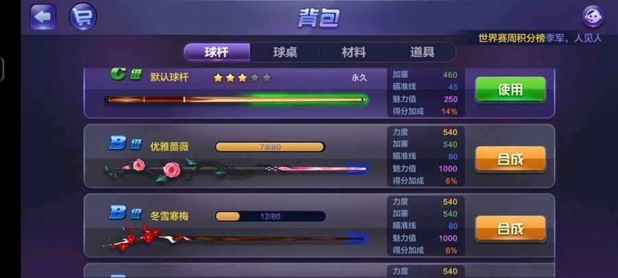 尖端巧粉助力每杆精准随心,游戏内配备各类属性、不同品质与造型的球杆及球桌,酷炫球技尽显至尊身份。