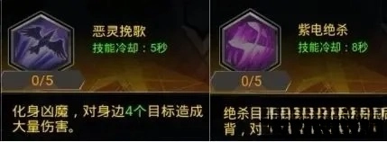 5级则是击杀目标后冷却时间缩短10秒。紫电绝杀堪称大招!它是冒险王单体技能中的NO1,初始冷却时间为6秒,不过击杀目标后刷新的冷却时间是10秒。把这个技能放在后续释放,是为了和破釜反击技能配合,以此实现极限伤害的输出。