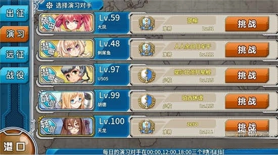 各位提督可以在此与其他提督的舰队切磋较量。演习的核心价值在于它相当于一个免费的经验获取渠道——在演习场中,即使舰娘们中途撤退也无需修理,同时也不需要消耗补给。因此,这里堪称免费的经验包,提督们不必过于在意演习的胜率,这个数值仅为记录用途,并无实际意义。