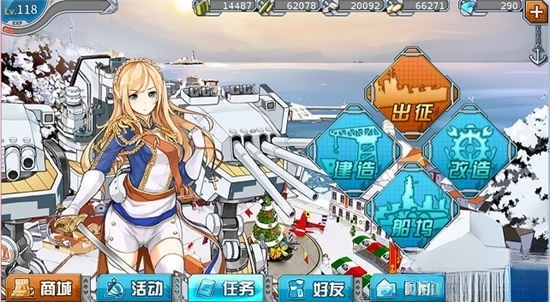 接下来让我们看看几个主要的常用区块:出征、建造、改造、船坞