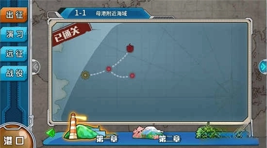 第一个要进行的就是最常规的推图,各位提督只要战胜每个地图最终BOSS点的敌军,就能解锁下一张海域地图。