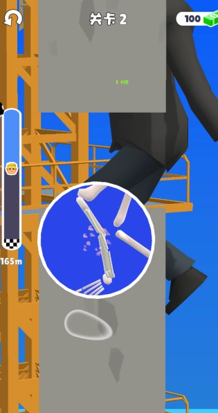 1、进入关卡1,操控火柴人走到高楼上,然后坠下去摔碎骨骼。
