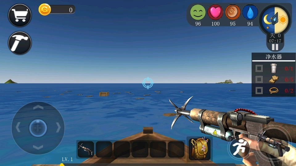 2、收集海量的材料用于改造自己的木筏,从而能够从容应对任何风雨的挑战。