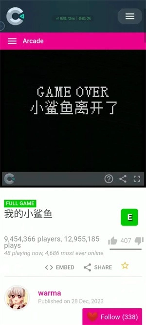 12、game over:在多次结局之后,选择是否领养小鲨鱼时,会出现关闭窗口的小叉叉