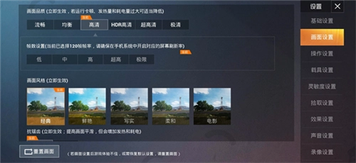 想要画面变流畅的,画面帧数可以选120FPS(设备性能要足够高)。