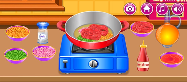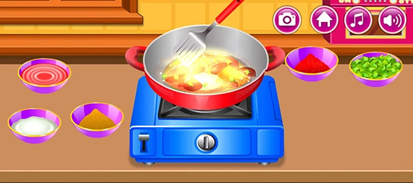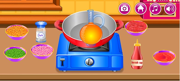 在厨房做饭整体画风非常卡通,也让它的接受度比较高,老少皆宜,让小朋友也可以试着学习做菜的流程,蛮不错的,模拟做菜的体验非常棒,也不会有什么限时之类的导致紧张的情绪,是一款挺不错的休闲游戏。
