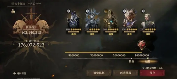 纳斯捷卡、萨里伏尔(单体输出)、阿西莉亚(前排)、泽菲(辅助)、休伯格(输出)、弥菈希亚(辅助)、阿尔顿