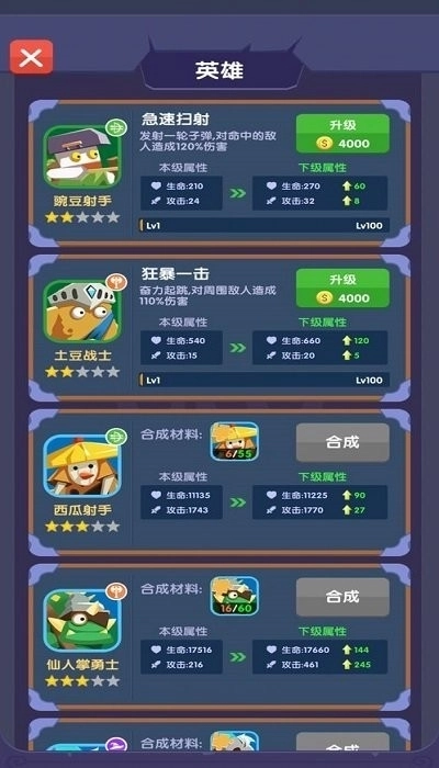 2、利用资源升级英雄属性,解锁更多强大的技能。