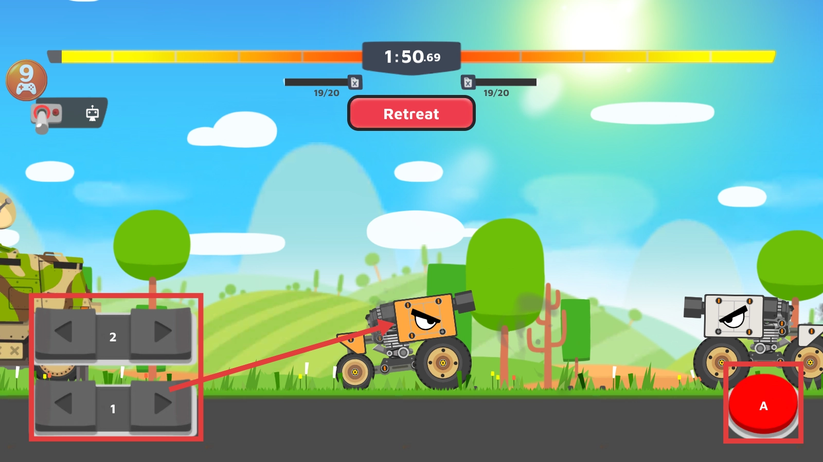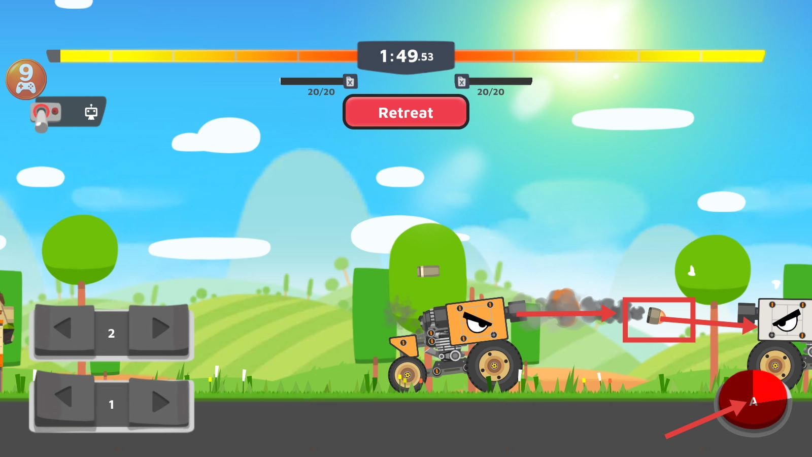 战斗时可通过【1-2】方向键操控坦克移动,点击红色【A】按钮进行攻击,以此熟悉操作方式。