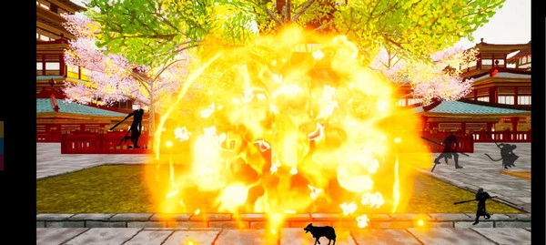 2、四个功能按钮分别是普攻、甩棍、跳跃,以及特效拉满的瞬移——发动时会化作一阵血色旋风~