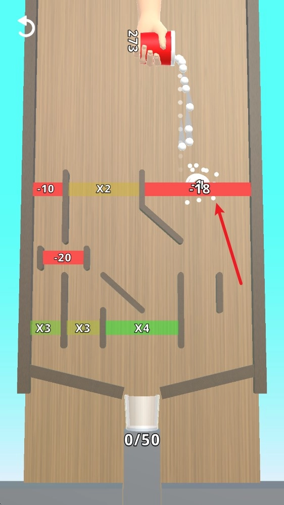 3、第二阶段中就会出现可以减少小球数的障碍,所以需要瞄准好之后再倒下。