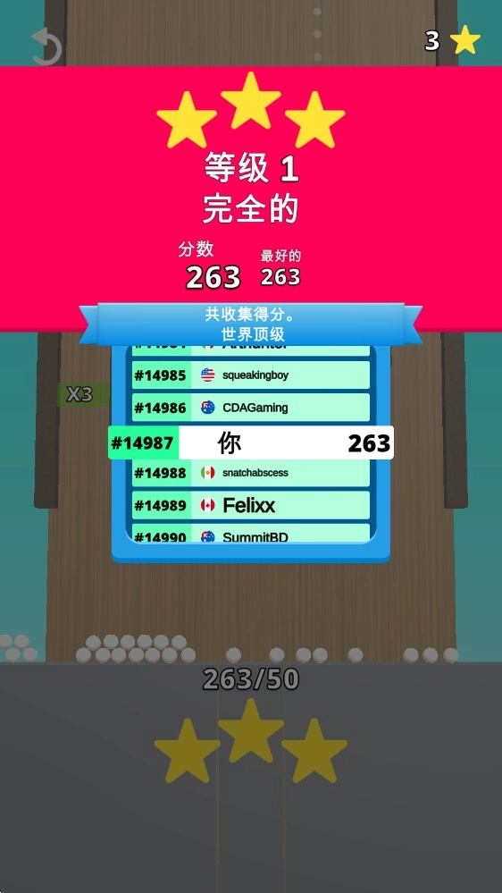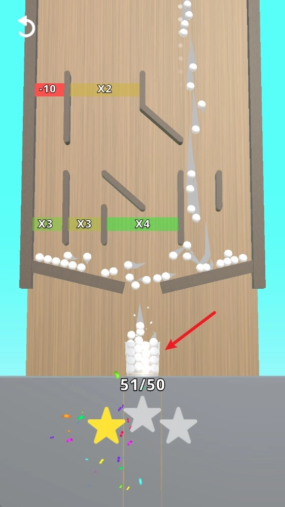 4、最后我们就能够看到下方的容器装下小球,并积累星星数。