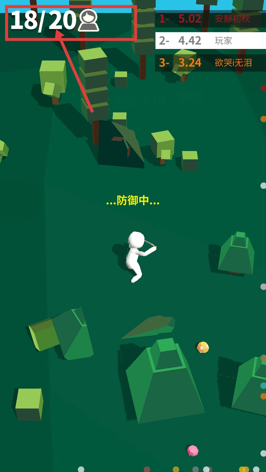 战斗时要留意【18/20】的生存进度,避开敌人的攻击,抓住机会打破其防御,慢慢提高自己的排名。