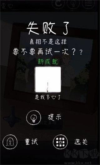 真结局的达成方法是:把画廊中间那幅画放到沙发上,然后用第一屏获得的棒子将其打晕。
