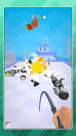 1.进入关卡后,按照提示操作,按住屏幕拖动,即可操控手中的棍子攻击敌人,需要确保攻击的精准度。