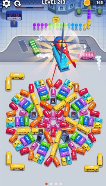 巴士迷阵属于休闲益智类游戏,它的玩法或许大家在各类平台的小广告中见过:一群不同颜色的小人排队等车,可车子被堵在了一堆,得点击车辆挪开,才能接到对应颜色的小人。这款游戏玩起来挺简单,对操作没太高要求,更考验玩家的规划能力与逻辑思维能力。