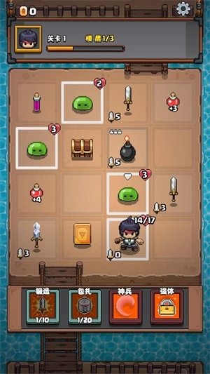 1、每层解锁全新装备搭配随机格子效果带来多样游玩体验