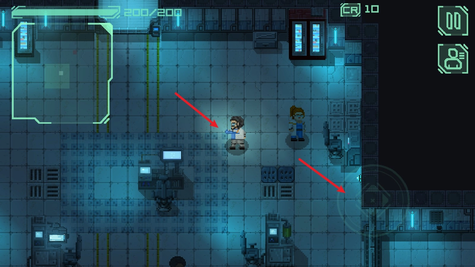 战争人太空行动是一款以太空基地为背景的RPG类悬疑游戏,在游戏过程中玩家可以选择不同的身份开展游戏,同时对于不同的身份所拥有的技能和所触发的剧情也就不同,游戏以仿像素风为主搭建一个收到不明原因影响而废弃的太空基站,而玩家需要从上帝视角俯瞰2D平面的角度去操纵我们的主角。