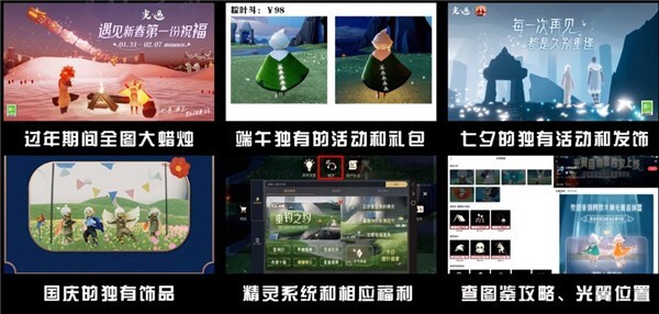 国服通常在春节、国庆、端午、七夕这类节日期间都会推出活动福利,不同季节和年度会有不一样的活动福利内容,另外还有精灵系统,以及查询图鉴攻略、光翼位置等实用福利!