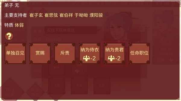 18、确认妃位的变动情况,提升崔子玄及其家族成员的忠诚度。