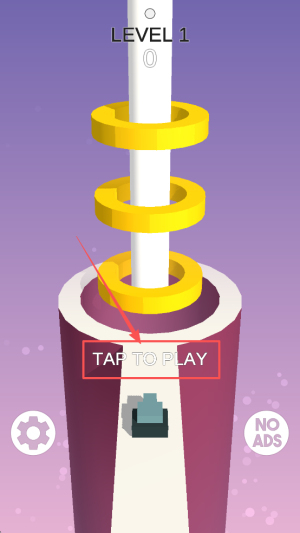 进入关卡的操作步骤:在显示“O LEVEL 1 TAP TO PLAY NO ADS”的界面中,点击“TAP TO PLAY”按钮即可。