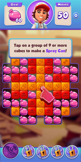 2、多样的道具可供挑选,每种道具的用途都各不相同,找准最恰当的使用时机,就能实现大范围的消除效果。
