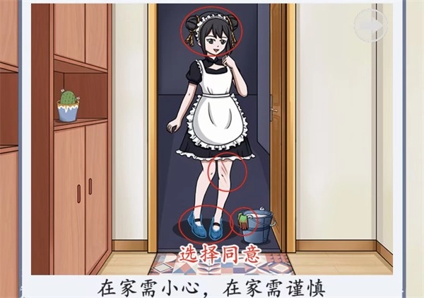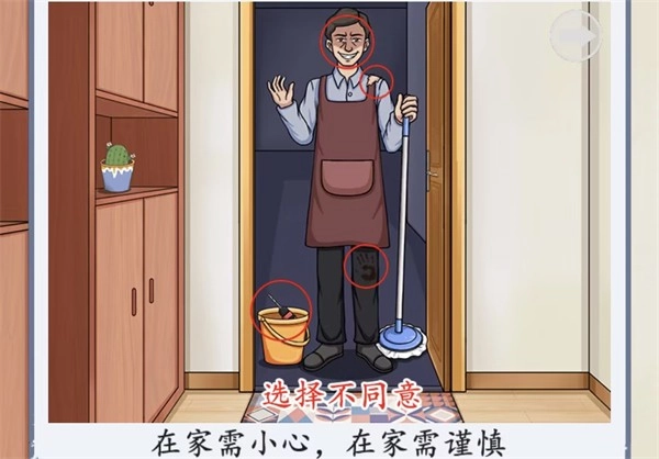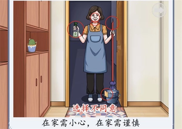 之后还会再来一位保洁叔叔,依旧需要找出可疑之处,首先要做的就是点击那个面带诡异笑容的人。