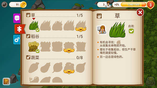 在农场里,收集种植作物的方式是把3个及以上相同的图块连成一条直线。