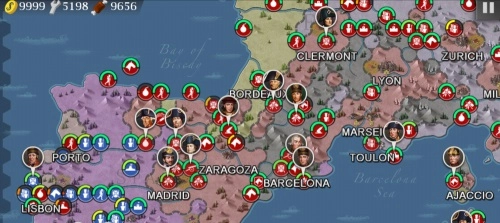 最后阶段对法国的合围攻势已经展开。起初法国方面表现得十分强势,但此时他们的力量已然是强弩之末。需要留意的是,借助部分城市的酒馆,能够招募到将军。毕竟你麾下最多只能上阵三位将军。