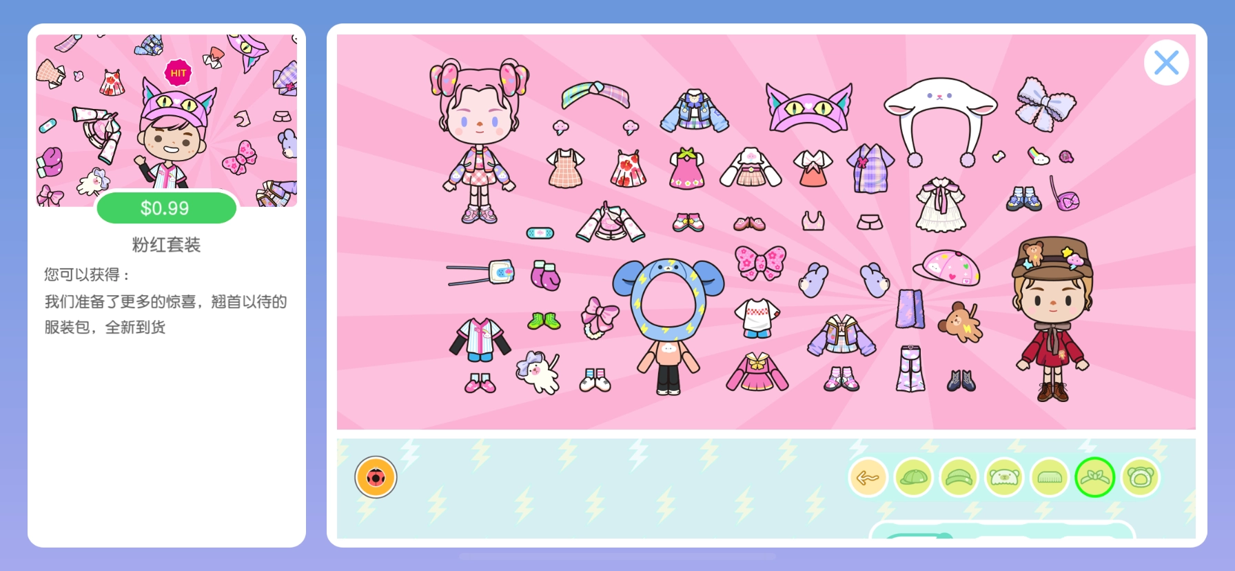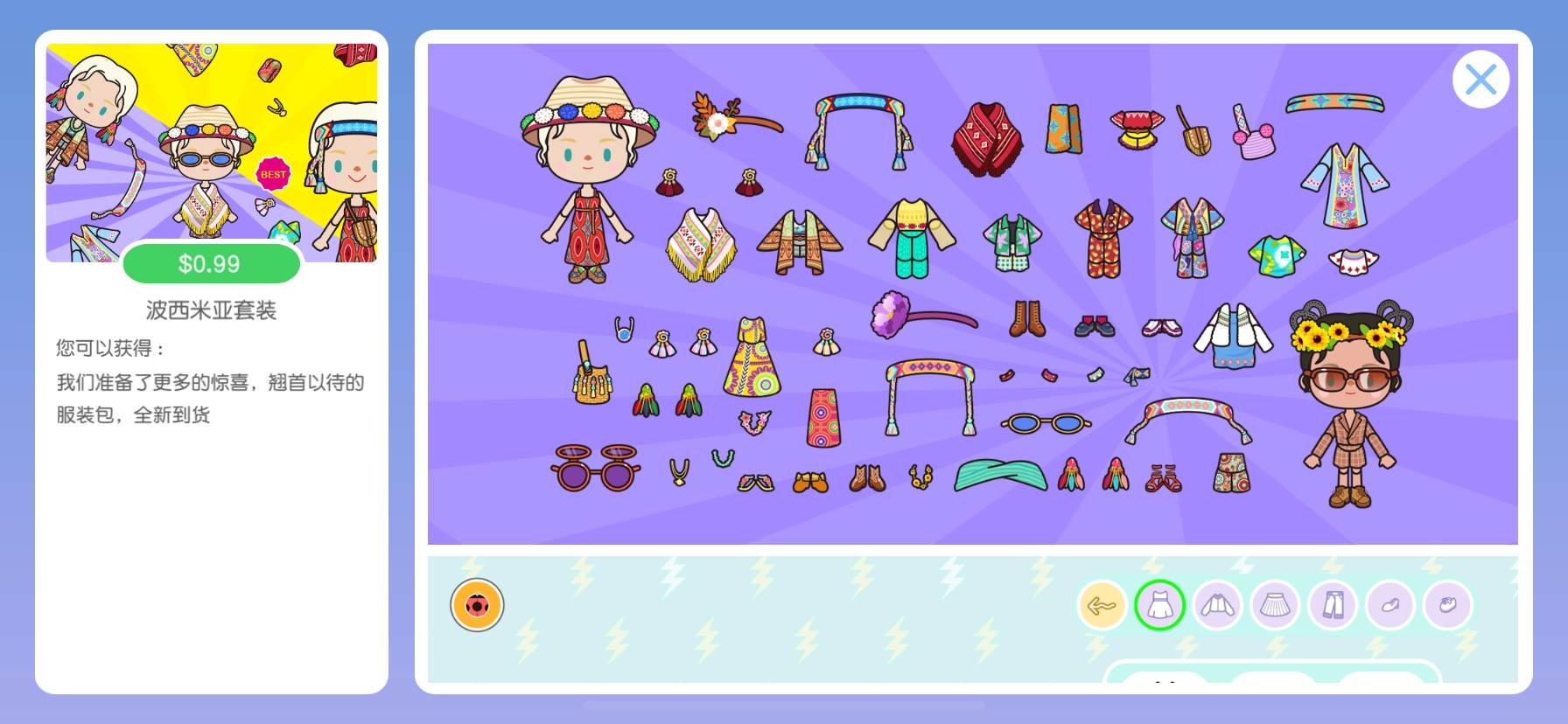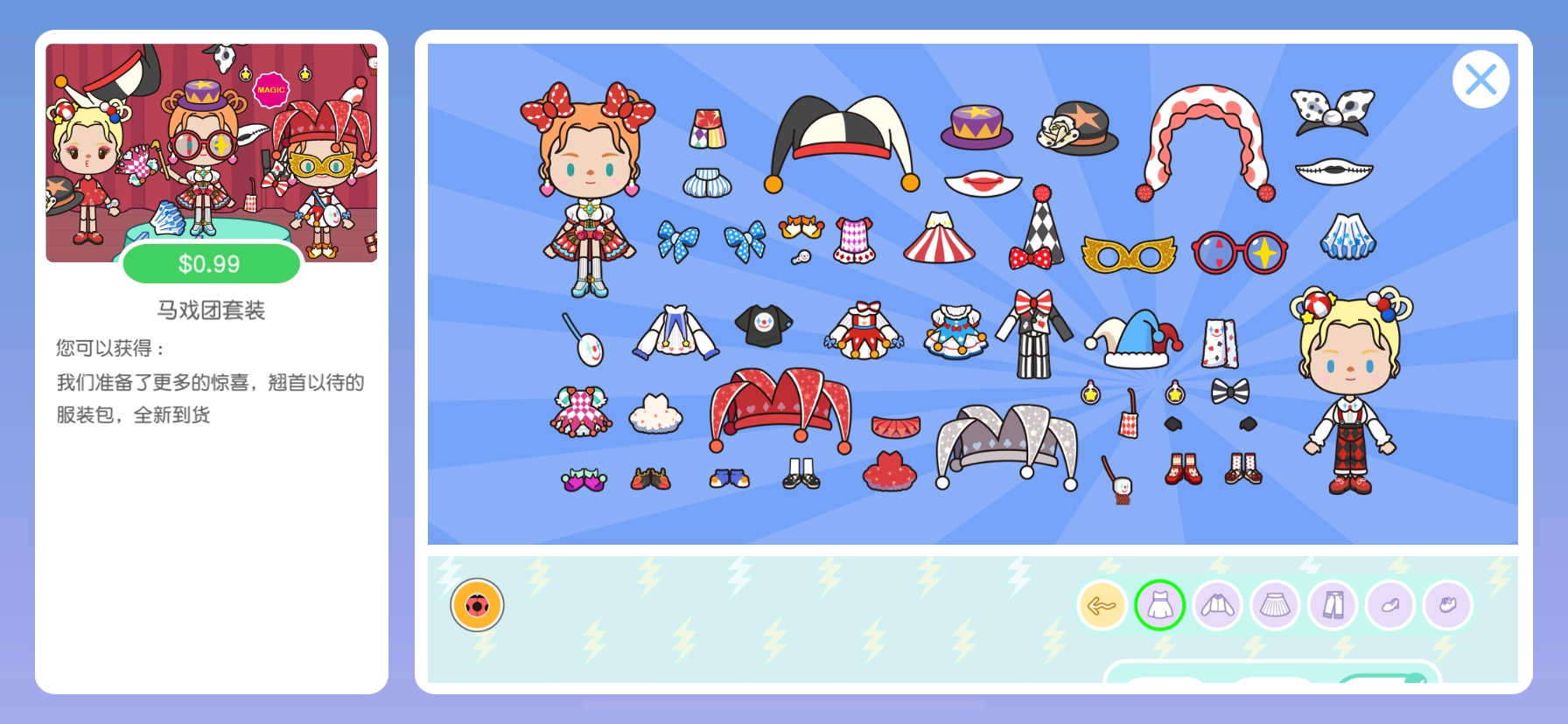 :一个完整的小镇世界,敞开心扉,选择自己的游戏世界,培养健康饮食习惯,吸引更多顾客。全新服装设计套装,内含粉色、波西米亚与马戏团风格系列;更有超百项自定义功能可供使用!