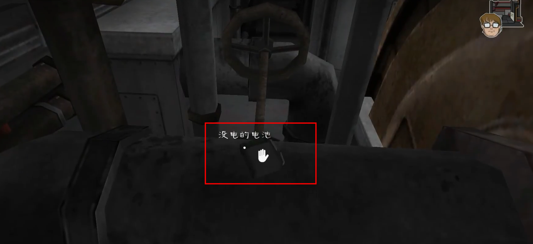 从房间出来,靠右边走到底,找到没电的电池
