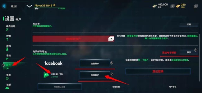 第三步:点击“账户”选项后,会出现三个账户类型可供选择,选取“谷歌连接账户”即可。