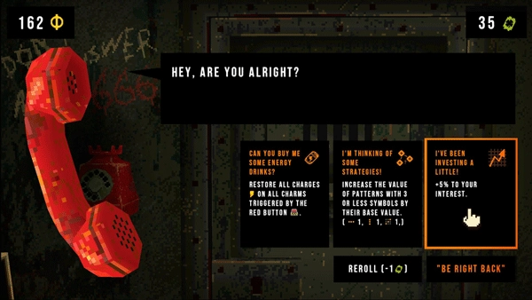再下一个回合就开始刷白电话了,把装备全都附上利息+3。一般两轮就够了。然后就刷概率,这里建议是加铃铛或者四叶草的概率,因为你失误的话,也可以利用aa电池,和私教,中邪电话,仪式之铃,怪异时钟和核按钮。来获得刷新次数,最后就一直叠铃铛概率就行了,等你叠到不想叠了,(这个其实是能到百分百的,我昨天,叠了10次左右铃铛,那个时候已经99.9的铃铛了,最后还剩0.1的樱桃,再用一次红电话,铃铛就百分百了)就可以去叠铃铛的分值,之后就是固定的打法。
