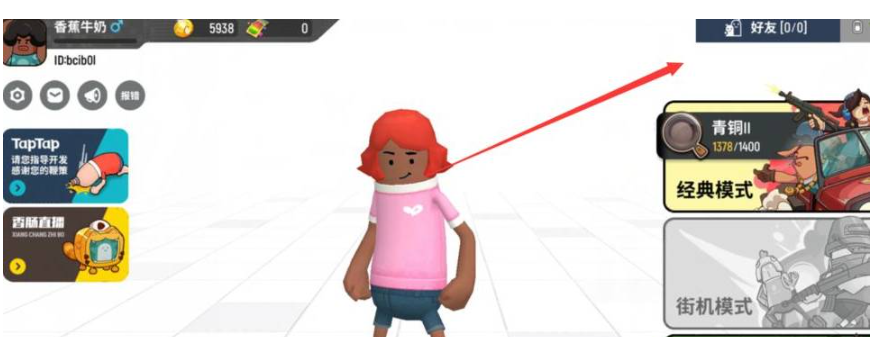 首先登录游戏界面后,点击右上角的“好友”选项,即可进入好友界面。